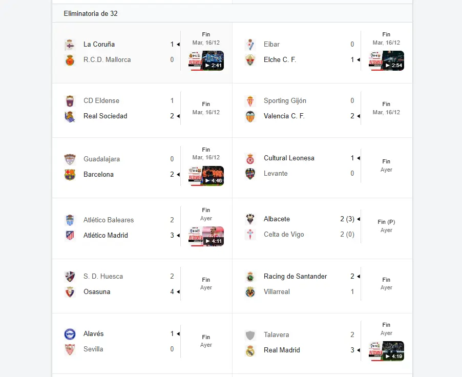 Resultados de la copa del Rey hoy 18 de diciembre 2025