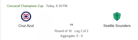 El equipo de Cruz Azul de México tiene un complicado juego de fútbol de la CONCACAF copa de campeones ante el Seattle Sounders FC. Ambos equipos se estan jugando el pase a los cuartos de final de este torneo y en esta ocasión los dos equipos tienen que ganar o ganar, no hay otra solución. El encuentro esta previsto para este miércoles a las 8:30 pm hora del este de Estados Unidos. Se espera que el equipo de la maquina sea apoyado por toda su afición para que puedan avansar a la siguiente ronda.