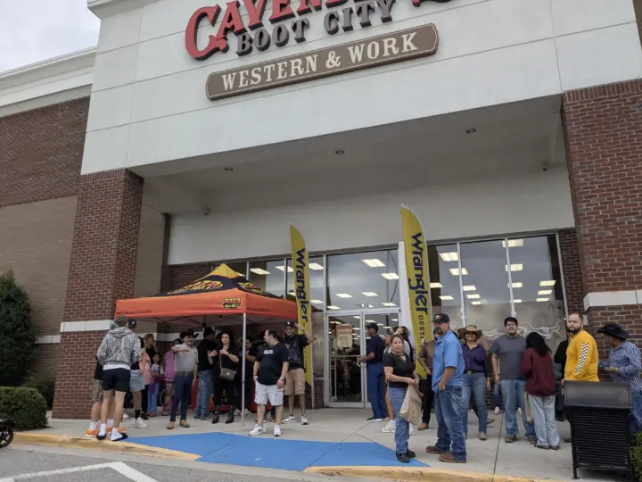 La Raza fue a Cavenders la tienda de ropa vaquera en la ciudad de Buford donde llegó mucha gente a comprar su ropa vaquera y también a limpiar sus sombreros. El primo Migue y El Potrillos fueron los encargados de entretener a las personas y de hacer las rifas de muchos pantalones vaqueros.