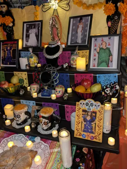 Se colocan altares con fotos de los difuntos, velas, flores de cempasúchil, comida, pan de muerto, bebidas y objetos que les gustaban.