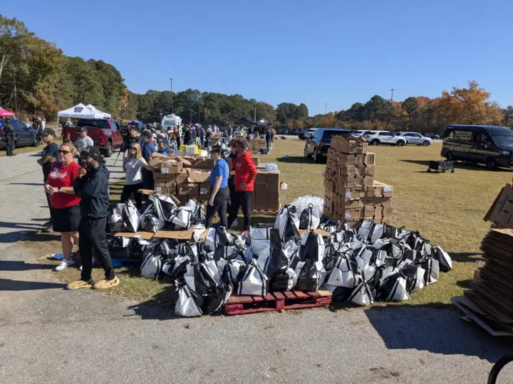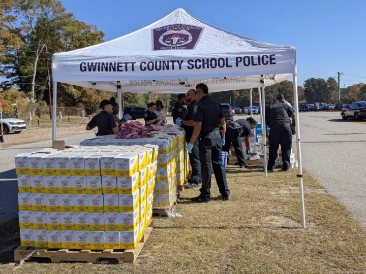 El jueves 6 de noviembre se llevó acabo la distribución de alimentos por parte del departamento del Sheriff del condado de Gwinnett de 11 am a 4 pm. Como cada año ya es una tradición donde muchas personas pasan para llevar alimentos a sus casas sin necesidad de bajarse del auto, hay muchos voluntarios que están ayudando a llenar las cajuelas con comida. La Raza siempre con la comunidad.
