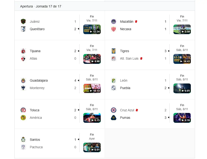Resultados de la jornada 17 del fútbol mexicano Posted By: aurelioarizmendi November 10, 2025 @ 9:04 am App Galleries, Que Pasa con La Raza Tweet Share Reddit +1 Pocket LinkedIn