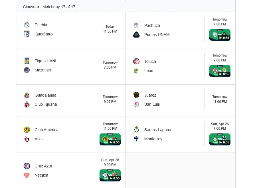 Por otro lado, equipos como Chivas de Guadalajara y Pumas UNAM buscan cerrar fuerte para no quedarse fuera de la fase final.